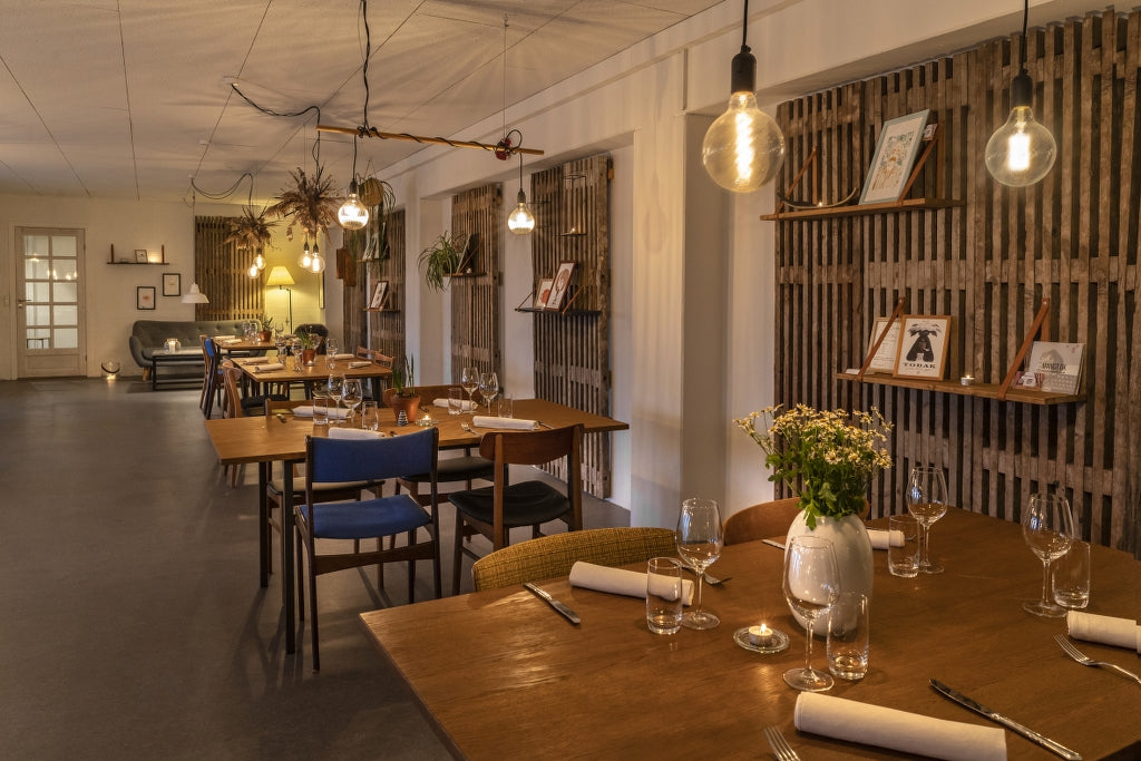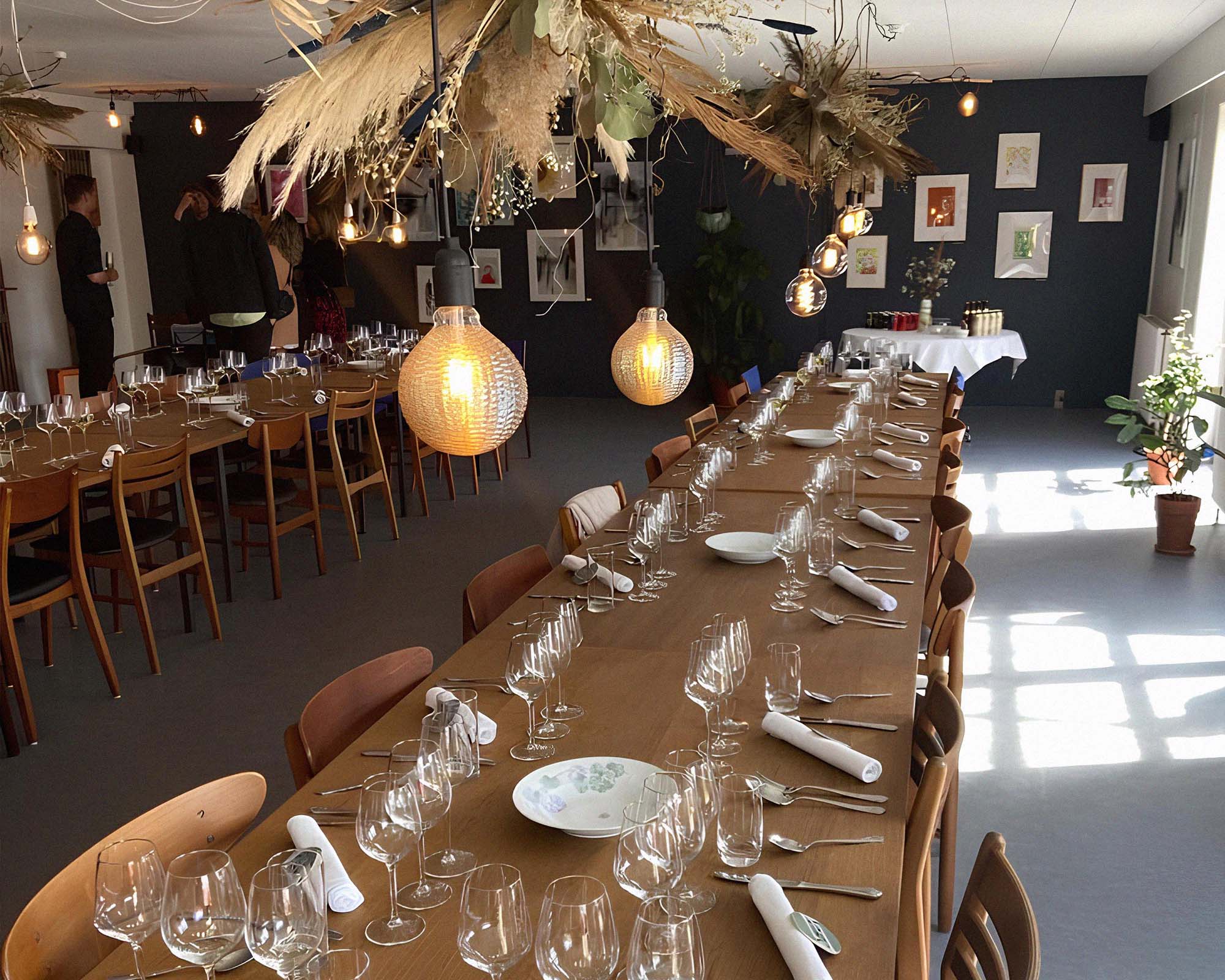 Vores festlokale i Knudlund overrasker de fleste. Når du første gang træder ind i rummet, vil du opdage, at det er en intim ramme. Det minder lidt om udestuen, hvor Spispænt i sin tid startede. Der er naturligvis bedre plads, men lige så hyggeligt.